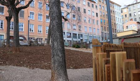 La placette Lebrun, située à l’angle de la rue Lebrun et de la montée Bonafous, s'est refait une beauté cet hiver. Transformée en jardin de proximité pour tous, les jeunes de la Maison de l’Enfance et de la Jeunesse y proposeront bientôt un refuge à biodiversité. Avec la plantation d'une prairie fleurie et de végétations nouvelles, cette petite place permettra aux habitants du quartier de trouver un peu de fraîcheur à l'ombre des grands arbres lorsque la chaleur de l'été deviendra moins supportable.