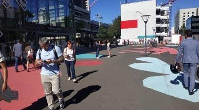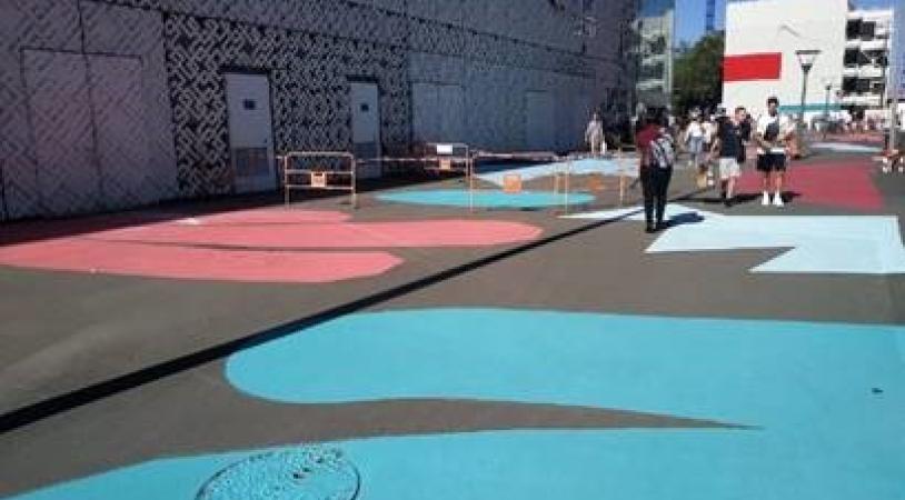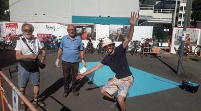Le conseil de quartier Voltaire - Part Dieu (3e) a participé vendredi 10 juin dernier à la fresque au sol du parvis de l’Entrée Rue des Cuirassiers du Centre commercial de la Part dieu, avec le plasticien-graphiste Bart Lanzini, sur l’initiative de la SPL Part Dieu. Quelques photos en couleur !