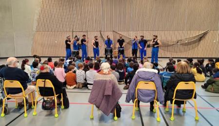 Afin de faire rayonner ce projet sur l’ensemble de la résidence et au sein de toute l’école, une série de concerts ont été proposés avec l’ensemble du groupe notamment le 21 janvier dernier où les Mécanos ont organisé trois récréations musicales pour une dizaine de classes de l’école Léon Jouhaux de la grande section de maternelle au CM2 (photo).