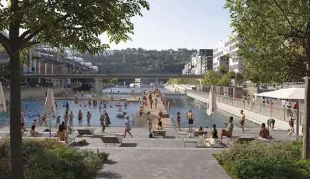 Le projet prévoit l'aménagement d'un site de baignade naturelle, à proximité du quai Charlemagne. Pensé comme un équipement estival, il proposerait plusieurs espaces : une zone de baignade récréative et familiale et une zone sportive pour les nageurs. Le site prévoit d'être sécurisé, encadré et équipé pour accueillir le public dans de bonnes conditions (accès, vestiaires, douches, espaces de repos...).