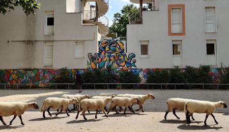 Des moutons en transhumance au cœur de la ville