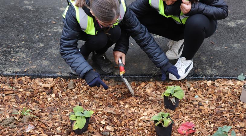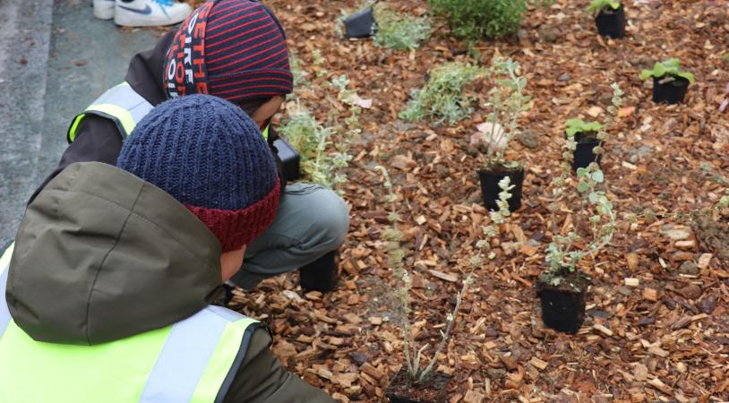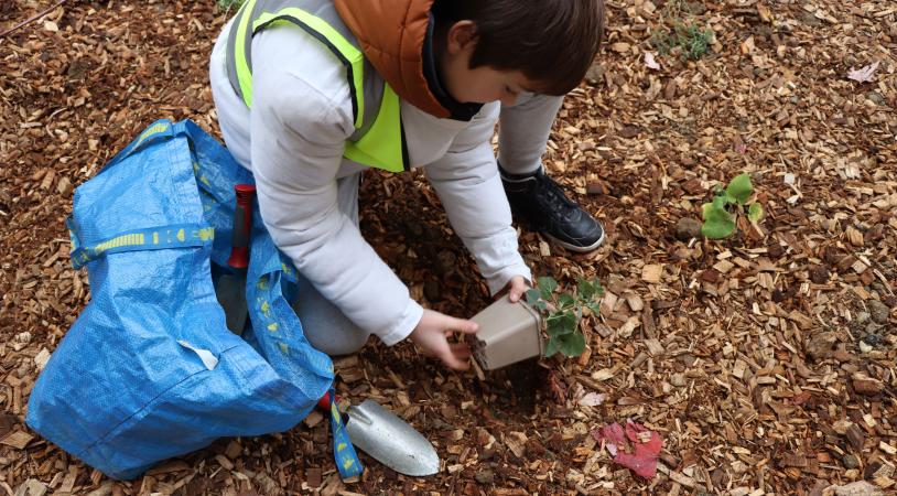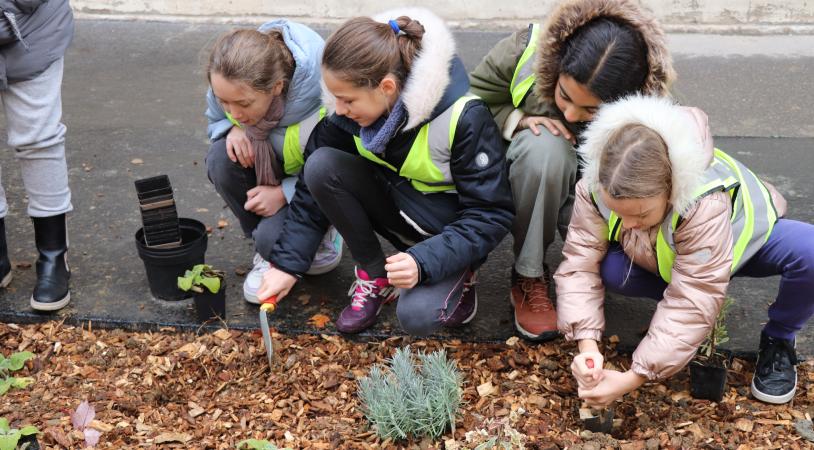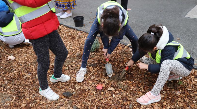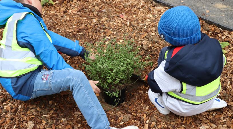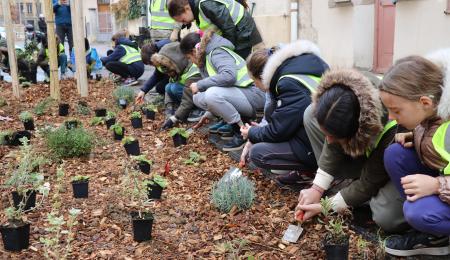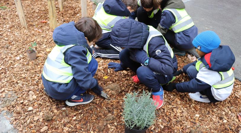Suite aux réaménagements des abords de l'école, les élèves de l'école Joseph Cornier étaient invités à planter les premiers végétaux !