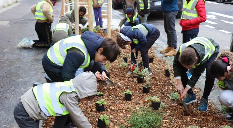 Relier les enfants à la nature, c'est leur procurer un cadre de vie plus végétalisé mais aussi les sensibiliser au vivant. Sécuriser, apaiser et végétaliser les abords des écoles, c'est tout l'enjeu de la démarche de la Rue des enfants de la Ville de Lyon et du projet la Maille Cornier.