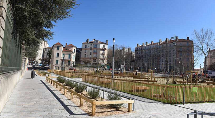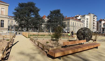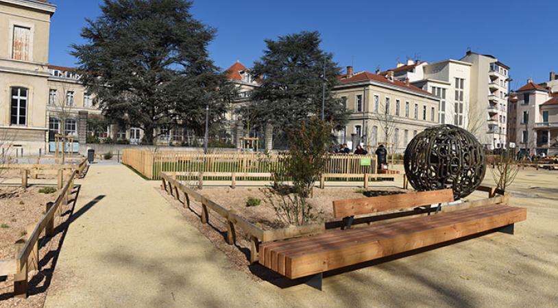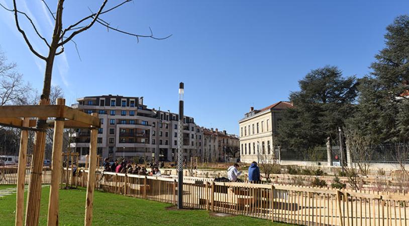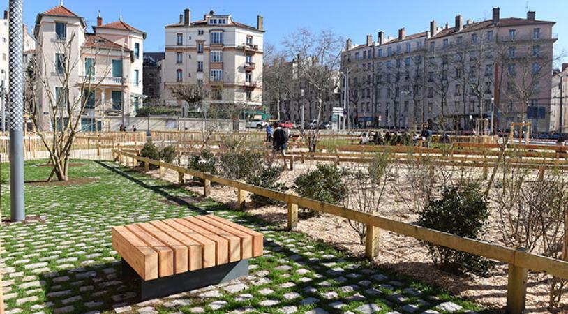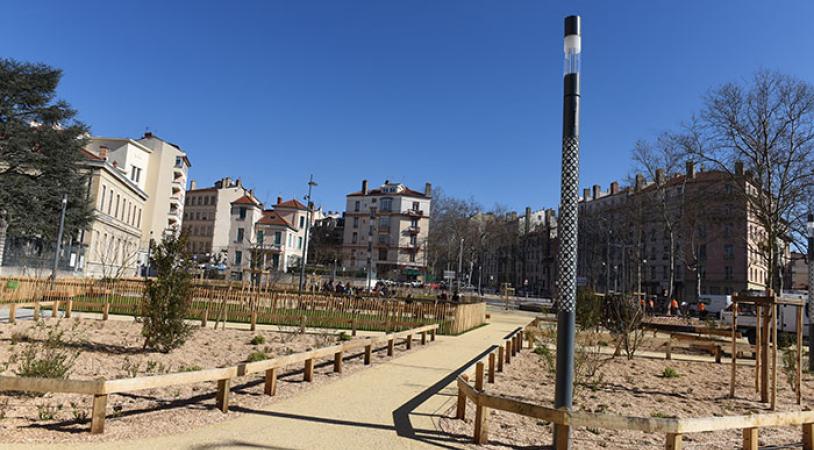Côté nature, plus de 1 500 m² de nouvelles surfaces végétalisées ont été plantées, avec une cinquantaine d’arbres, quelque 300 arbustes et 4 000 plantes vivaces. Les végétaux choisis, attractifs pour les insectes pollinisateurs, composent une palette d’aspect très naturel, adaptée au climat et au sol lyonnais avec de faibles besoins en eau. Ils ont été choisis suite à la concertation publique, parmi plusieurs palettes végétales.