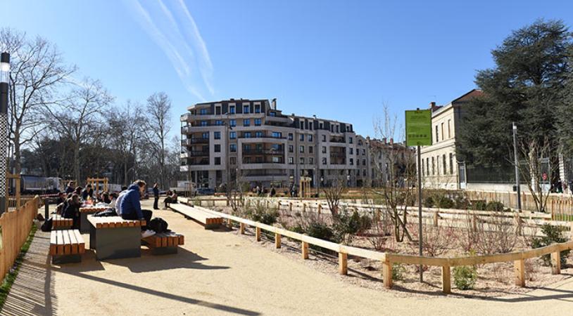 Cheminements piétons pour mieux organiser les flux à travers les massifs structurés autour d'une clairière centrale, bancs et banquettes, tables de pique-nique et transats, le réaménagement fait la part belle à la détente et aux loisirs. Ce projet a aussi été l’occasion de reconfigurer les voiries attenantes afin d'apaiser et sécuriser les circulations et itinéraires modes doux.