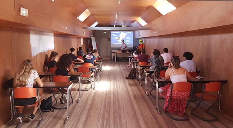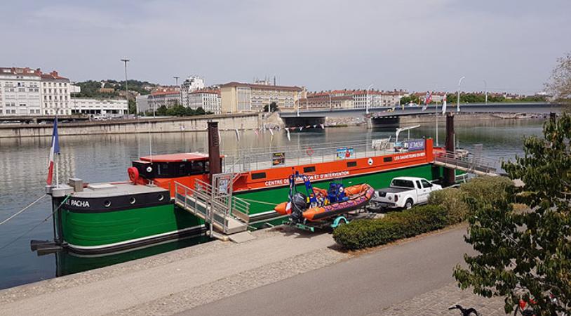 Lorsqu’on remonte le Rhône le long des quais depuis Gerland, difficile de louper son profil vert et orange et de ne pas entendre les roues de son ponton grincer sur l'asphalte au rythme du fleuve. Sur sa coque, la péniche le Pacha annonce fièrement « Centre de Formation et d’Intervention – Les Sauveteurs en mer ». Ici, tout au long de l’année, on forme une trentaine de jeunes filles et garçons à la surveillance d’événements sur l’eau comme la Lyon Kayak et des activités nautiques qui vont être proposées dans le cadre du Festival Entre Rhône et Saône. « Nous serons présents à la darse de la Confluence, à la Guillotière et à l’Île Barbe. Nous mobiliserons une trentaine de sauveteurs et trois embarcations sur les trois jours du festival. En parallèle, nous ouvrirons les portes de la péniche au public pour expliquer nos activités le samedi 2 juillet de 13h à 18h », précise le directeur Jean-Marc Boisson.