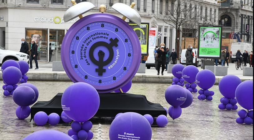 Enfin, entre le 6 mars et le 8 mars, un réveil géant est installé fontaine de la République. Un symbole fort dans un lieu emblématique de la vie des Lyonnaises et des Lyonnais, pour rappeler que l’heure de l’égalité a sonné ! Le Collectif Droits des Femmes 69 a défilé le dimanche 7 mars à 14h, départ de la Place Bellecour.
