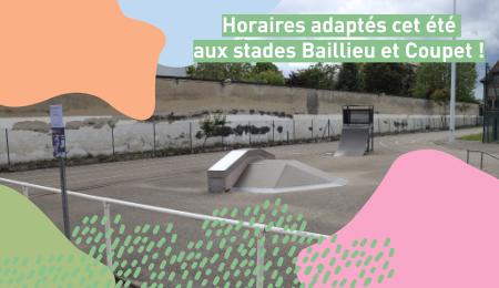 Afin d’équilibrer les usages entre les stades Coupet et Baillieu et de favoriser la tranquillité, les horaires estivaux d’accès à ces équipements sont adaptés pendant l’été.