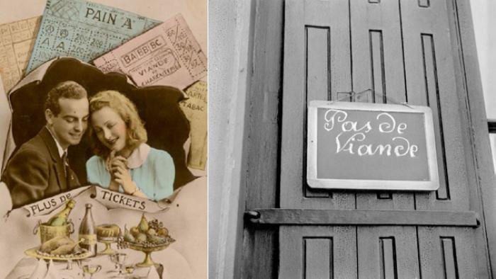 Dès le début du conflit, des cartes d’alimentation sont mises en place pour répartir au mieux les denrées. Au fil des mois, la plupart des produits sont soumis aux restrictions et les ménagères, qui passent en moyenne 4 heures par jour dans les queues (en 1942), confrontées aux étals presque vides des commerçants.