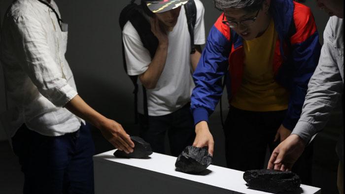 Damien Fragnon nous entraîne également dans le potentiel poétique des processus vivants, en se lançant pour chaque œuvre dans des entreprises à caractère protocolaire et quasi scientifique. À travers un corpus de données exposées à La BF15, l’artiste convie le visiteur à retrouver les sites où il installe de “fausses” météorites en substitution de celles qui y auraient atterri.