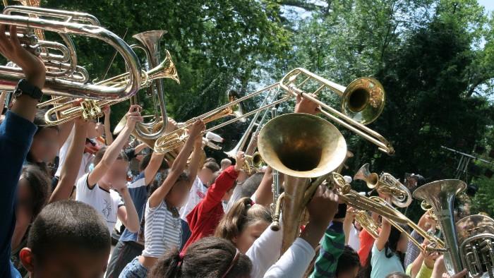 La compagnie met à disposition une trentaine d’instruments (trompettes, trombones, tubas et percussions) et invite tous les curieux à participer à une séance de musique collective permettant de préparer une restitution endiablée dans l’espace public. Toutes les techniques de transmissions orales seront mises à contribution : imitation instrumentale ou corporelle, « riffs » rythmiques, improvisation collective dirigée (type soundpainting), percussions corporelles, bruitisme instrumental ou vocal, etc. Tous les musiciens et musiciennes amateurs et amatrices souhaitant se joindre à ce joyeux ramdam sont les bienvenus.