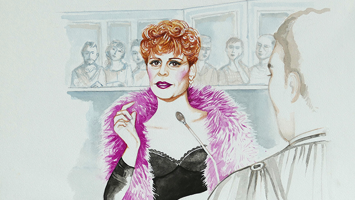 À la barre, se succèderont des personnages des sketches de Sylvie Joly comme autant de témoins à charge, des proches, des experts…