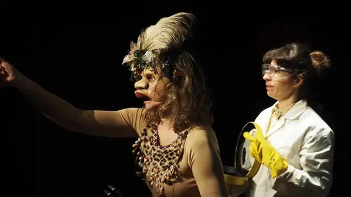 Cette création aux allures scientifiques est une invitation au voyage imaginaire qui aborde avec humour l’ethnocentrisme qui consiste à vouloir modeler l’autre à son image. Outre la suprématie de l’Homme sur l’Homme, on évoque ici la suprématie de l’Homme sur la nature. Les recherches de Solange questionnent éthiquement la limite des avancées de la science : manipulations génétiques, clonage. La vie éternelle est-elle possible?