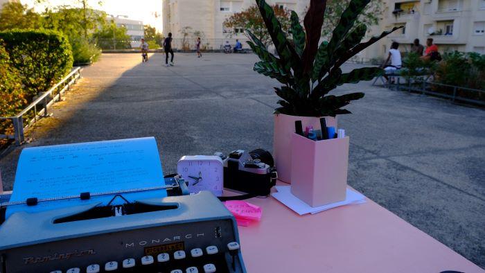 Une soirée qui viendra clôturer un long temps de recherches artistiques sur le quartier et la ville de Lyon, comprenant écriture à la machine à écrire, photographies argentiques de l’architecture du quartier et création d’une scénographie participative.