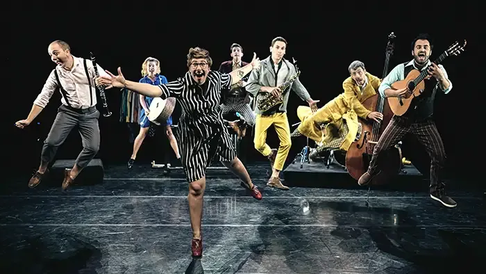 Ce spectacle enivrant vous transporte avec l’imaginaire des chants d’Europe de l’Est, des airs tziganes et des sonorités du jazz : violon, saxophone, clarinettes, batterie, guitare, contrebasse, vibraphone.