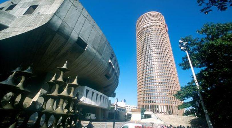 Gratte-ciel original conçu par A.Cossuta et réalisé entre 1974 et 1977, cette tour concrétise à elle seule l'idée phare du projet Part-Dieu : la 3ème colline.