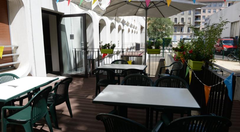 La résidence Louis Pradel propose une salle de restauration, un grand salon et un jardin intérieur pour profiter au calme des beaux jours.