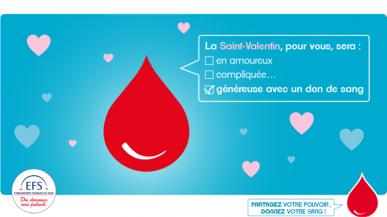 A l’occasion de la Saint-Valentin, l'Etablissement Français du Sang organise une collecte de sang.