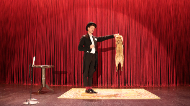 Mise en scène d'un renard rebelle et d'un magacien pour un duo cartoonesque, entre music-hall et marionnette.