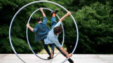 Deux roues cyr et un violoncelle, un ballet de courbes et de contre-courbes de la compagnie Yan Raballand. Spectacle suivi du concert d'Avatars.