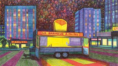 Avec son art du burlesque, Patrice Thibaud vous souhaite la bienvenue au bout du couloir de la mort.