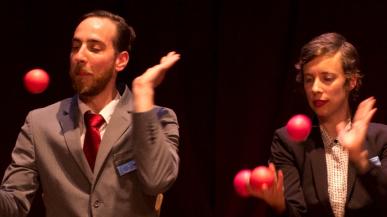 "Ce ne sera pas long" est un duo théâtral et jonglé, sensible et humoristique.