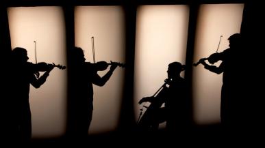 Nouveau défi pour le Quatuor Debussy. Sans partition, les musiciens se déchaînent et jouent avec leurs ombres.