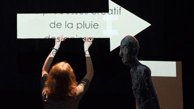 "Histoire autobiographique où je raconte les vingt ans que j'ai passé avec un bras en l'air jusqu'à ma mort". Tim Crouch.